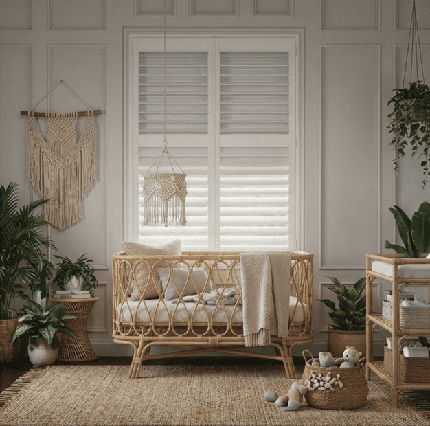 Shutters bring structure and timeless style. Total Blackout Blinds bring comfort and control. Together, they create a space that looks considered by day and feels cocooned by night.