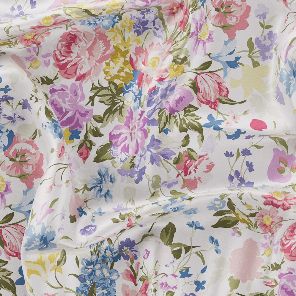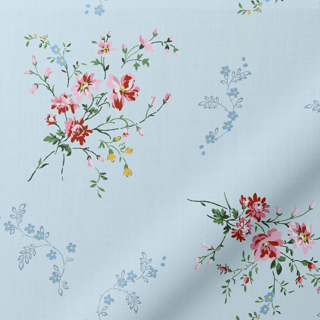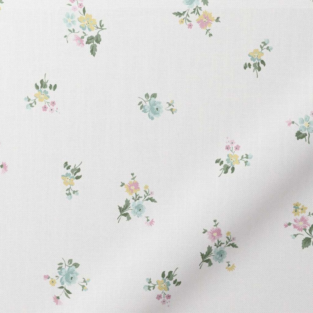 Created through the synthesis of a diverse range of botanical influences sourced from the Liberty archive, Posy Corsage channels Victorian-era style floral patterns. The design’s light and airy scattered rose, pink, and daisy posies evoke freshly picked blooms, inviting us on a tranquil journey across a garden filled with newly sprung flowers.