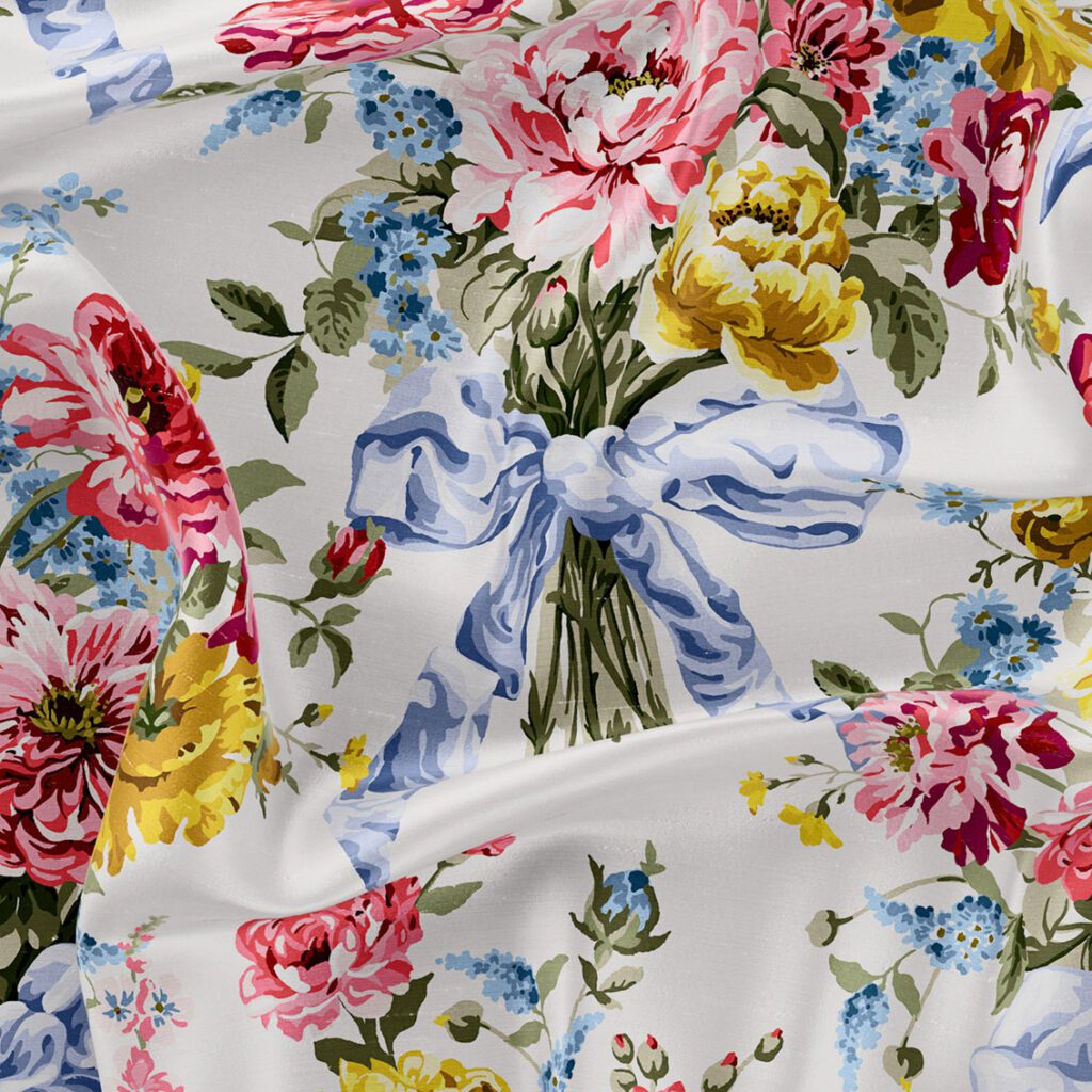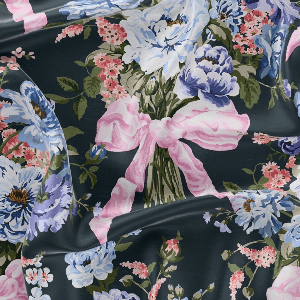 Assembled from an array of botanical prints unearthed in the Liberty archive, Bow Bouquet celebrates the kaleidoscope of colours and the splendour of nature’s beauty, boasting a symphony of opulent blooms. Echoing the grandeur of the Regency era, this theatrical pattern features roses, peonies, asters, lilacs, and larkspur, forming breath-taking bouquets delicately bound together with silk satin bows. Taking centre stage, the flower’s jewel-like hues are accentuated and intensified through Liberty’s depth of palette, adding a sense of intrigue and visual contrast.