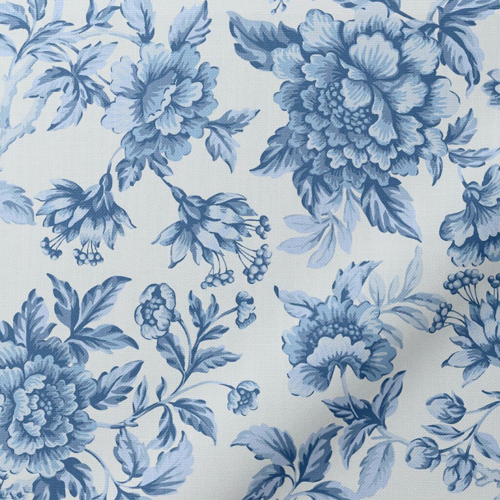 Soft, delicate, and romantic, this pretty posy design was discovered as a hand-painted fragment in an archival Liberty book dating back to c.1865. Redrawn and recoloured with meticulous care and artistic sensibility, Garden Blooms features a multidirectional layout of scattered flower sprigs. Blossoming chrysanthemums, poppies, bluebells, daisies, and tiny rosebuds appear to drift through the air on a balmy summer’s day.