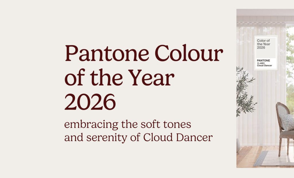 Pantone’s Colour of the Year 2026, Cloud Dancer, sets a serene new mood for the home. This naturally balanced white invites softness, clarity and calm, perfectly expressed through sheer curtains, light-filtering fabrics and gentle layers of blinds. Explore how Cloud Dancer can transform your windows into a light-filled retreat and create a sanctuary away from the pace of the everyday.